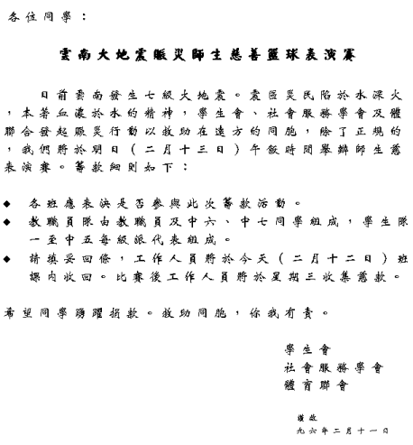 | Telephone : (852)2895-4309 Facsimile : (852)2882-4546 E-mail : lemonlam@ecs.school.net.hk ![]() E-mail : kkkok@ecs.school.net.hk ![]() E-mail : calvinc@ecs.school.net.hk